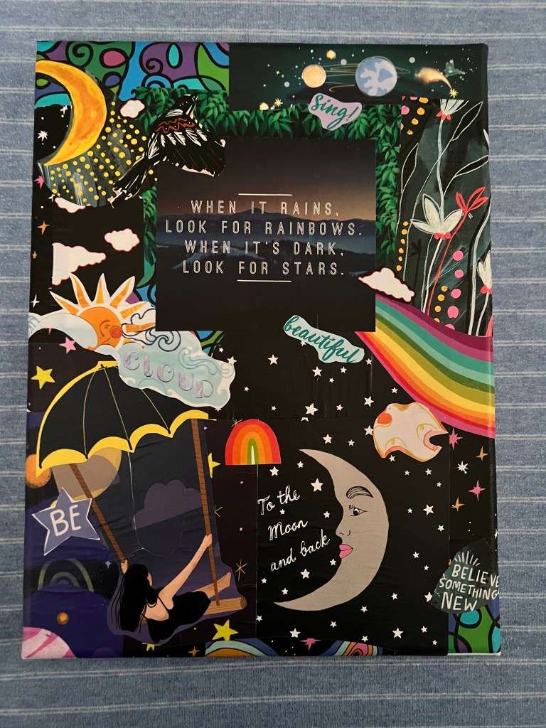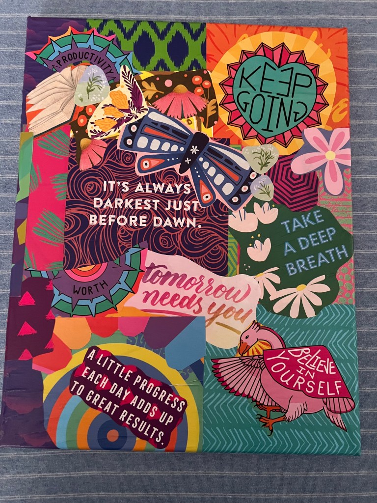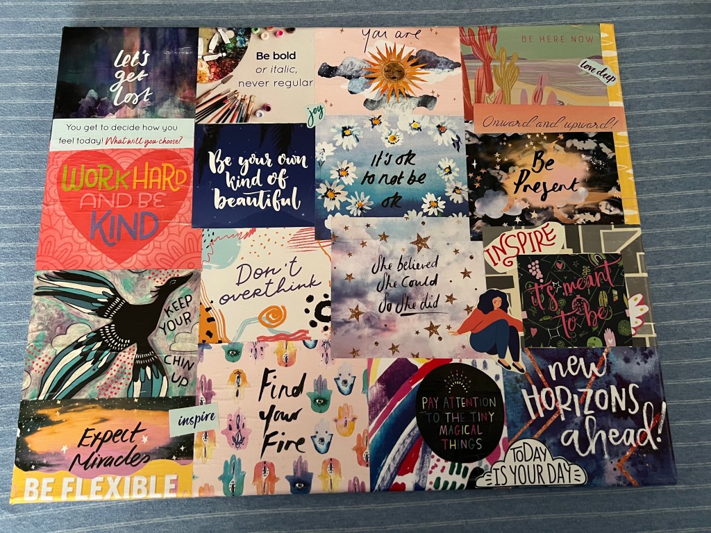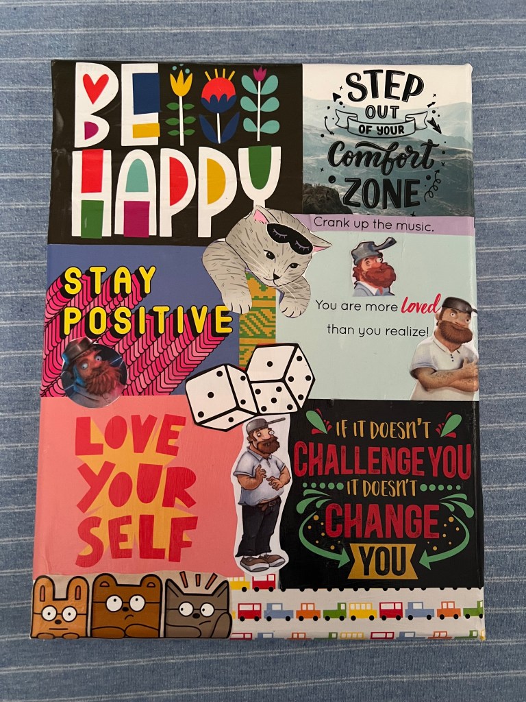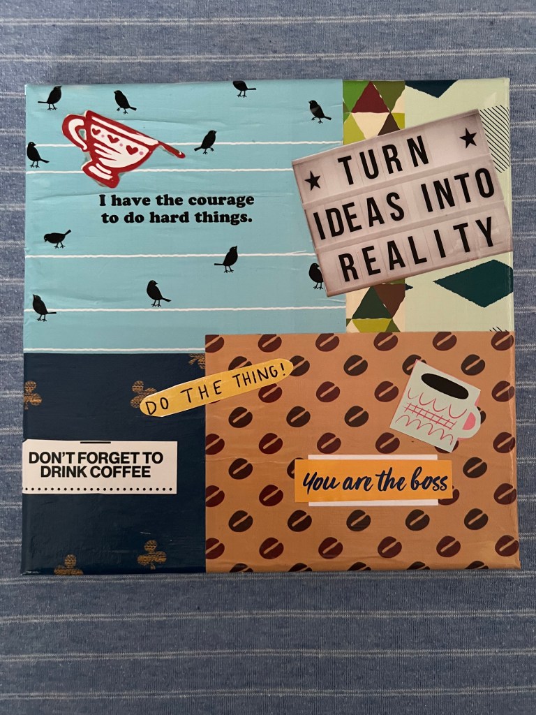 I am not a professional, but it is something I do that helps relax me. My current favourite is making decoupage on canvas of things I find inspiring from my ‘page a day’ calendar.