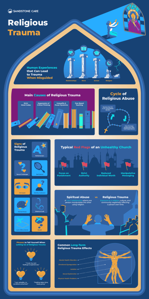 I have spent the last 14 years trying to “come to grips” with my past. I have made some progress recently. But, the work is tough. Especially when you are doing it on your own. This article is everything: https://www.sandstonecare.com/blog/religious-trauma/